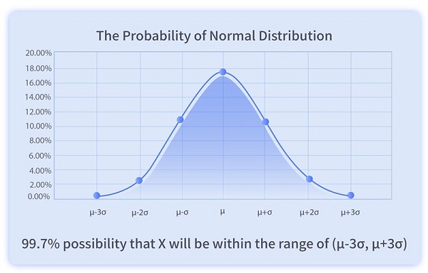 In a measurement event that conforms to a normal distribution, σ describes the degree of dispersion of the data distribution. The smaller the σ, the more concentrated the data distribution, vice versa. 3σ is usually used as the maximum accuracy for checkweigher. The 3σ calculated through experimental tests followed by the formula can better reflect the accuracy and repeatability of the checkweigher.