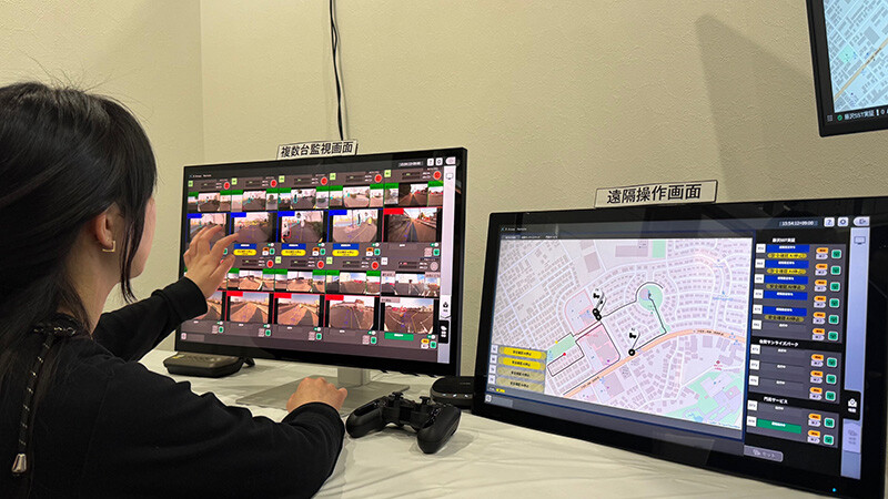 To address labor shortages using robots, it is crucial that a single remote operator can safely manage multiple robots simultaneously. In response to this challenge, in April 2022, Panasonic HD became the first in Japan*2 to achieve full remote operation, with a single operator simultaneously controlling four small and remote-controllable mobilities without security personnel stationed near the mobile robots. Since then, the company has continued to provide services with various partners while operating multiple robots simultaneously.