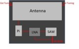 The module includes two active components – the LNA and filter – and an external matching feature.