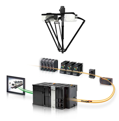 Omron Automation and Safety (USA) - Omron’s integrated Sysmac robotics solution offers the capability to integrate machine control, motion, remote I/O, HMI, safety, vision and robotics all in one controller, over one network, and using one programming software. The Omron Sysmac NJ Machine Automation Controller (MAC) is the core of this system architecture and based on the high speed EtherCAT network, providing optimal motion performance for demanding pick and place applications. Up to eight delta robots can be controlled by one Sysmac NJ.
