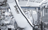 The Stäubli RX160 easily copes with the torque created by the quadruple universal grippers at maximum extension.